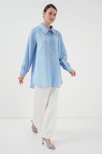 • Fırfırlı Uzun Gömlek Tunik 5952 Mavi